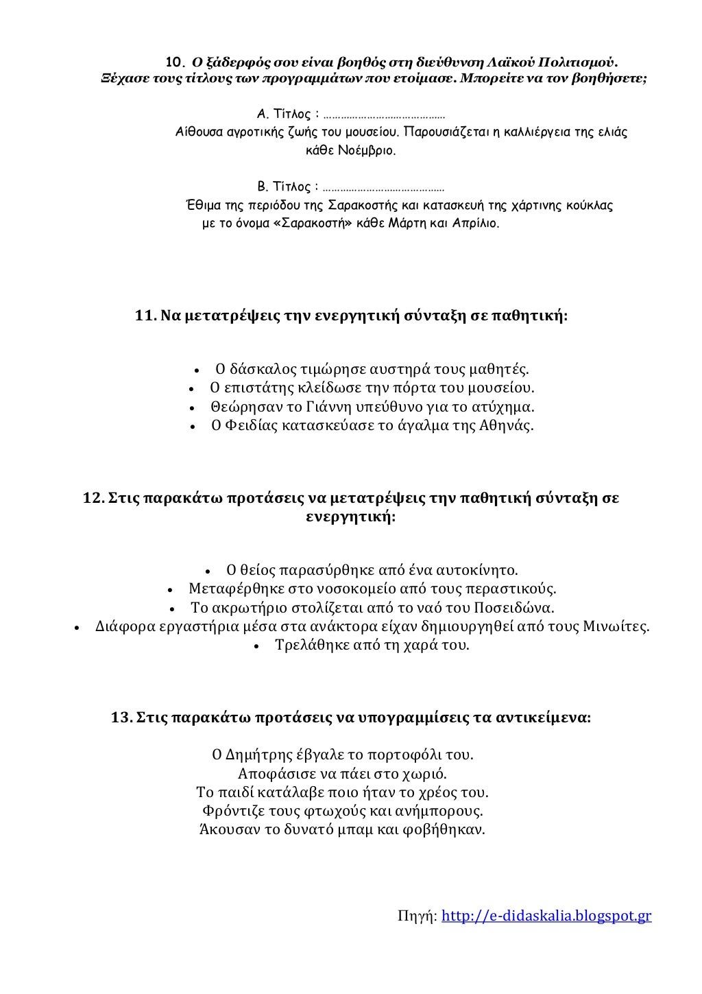 Ενεργητική, παθητική σύνταξη ( ΘΕΩΡΙΑ, ΠΑΡΑΔΕΙΓΜΑΤΑ , ΔΙΑΔΡΑΣΤΙΚΗ ΑΣΚΗΣΗ)
